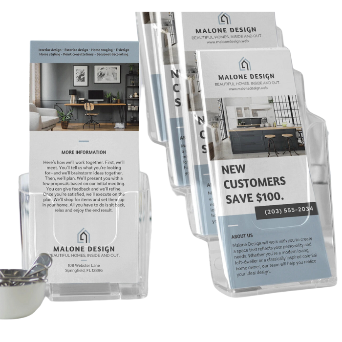 You can print full color on the front or on both sides of your flat piece. For folded or scored products you can print full color on the outside or the outside and inside of your piece.