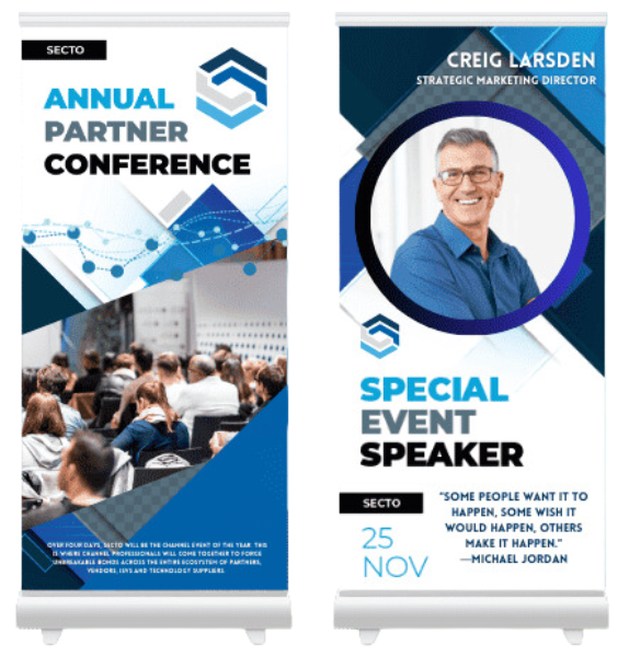 Our retractable banners are made from high-quality vinyl or fabric for durability and a professional finish.