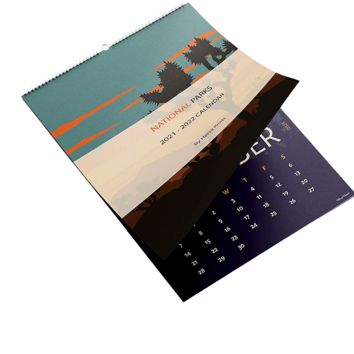Wall Calendars Printing OptionsCover PaperYou may select one of several premium paper types for the external cover of your multi-page product or match it to the internal paper type. Same as Inside Pages Your cover paper will match the selection you make for your interior page paper. For a more durable cover we recommend choosing one of our premium paper options to upgrade your piece. 100 lb. Gloss Cover Our 100 lb. gloss cover stock is a thick, premium cover stock with a glossy sheen on both sides. This is thicker and heavier than a text weight stock and has a gloss finish to make colors more vibrant and produce a more durable cover. Paper Type: C2S Gloss Cover Thickness: 9.3 pt. Weight: 100 lb. Brightness: 90 Color: White 13 pt. 100% Recycled Matte Cover Our 13 pt. recycled matte cover stock is the ultimate eco-friendly choice. This paper is made from 100% post-consumer waste and has excellent printing characteristics combined with a sophisticated matte finish. Paper Type: C2S Matte Cover Thickness: 13.1 pt. Weight: 120 lb. Brightness: 95 Color: White Interior Paper You may select one of several premium paper types for the internal pages of your multi-page product. You can select a different cover paper or match it to the internal pages. 100 lb. Gloss Text Our 100 lb. gloss text is a thicker paper weight stock with a glossy sheen on both sides. This paper is an ideal choice for a more durable piece with thicker pages than other text weight options and has a gloss finish to make colors vibrant. Paper Type: C2S Gloss Text Thickness: 4.9 pt. Weight: 100 lb. Brightness: 90 Color: White 70 lb. Matte Text Our 70 lb. matte text stock is a lightweight matte text stock. This thinner material will give your pages a crisp, clean matte look. This paper contains 10% post-consumer waste. Paper Type: C2S Matte Text Thickness: 4.2 pt. Weight: 70 lb. Brightness: 93 Color: White 80 lb. Gloss Text Our 80 lb. gloss text is a lighter paper weight stock with a glossy sheen on both sides. This is a more affordable option than heavier gloss text stocks. Paper Type: C2S Gloss Text Thickness: 3.7 pt. Weight: 80 lb. Brightness: 90 Color: White Binding For multi-page products, you can select several binding types. Saddle-Stitched (Stapled) Two staples are used in the center of the piece to bind the pages together. Saddle-Stitched (Stapled) Wire-O (Black) Wire-O is a series of wire loops punched through the spine of your piece to bind pages together. It is recommended for projects 48 pages or less. Wire-O (Black) Hole Drilling Add optional hole drilling to your product in one of several diameters. Hardcopy Proof For an additional fee, you can order a printed proof that entitles you to receive up to three hardcopy proof revisions. A hardcopy proof offers a color accuracy guarantee for the final proof that is approved by you. Months You can select several month and page formats for your piece. |